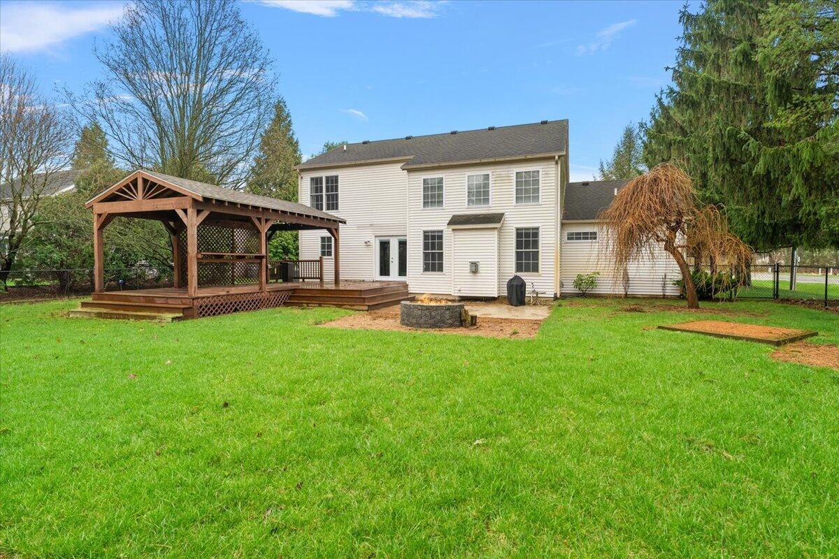 Gracious 5-bedroom. 2.5 bath with over 2900 SF of total living space on 3 levels blends comfort, style, and thoughtful design to fit today's lifestyle. Inside you will find a light-filled great room with a soaring vaulted ceiling, gleaming hardwood floors, gas log fireplace and expansive windows create an inviting, comfortable room. Great room flows effortlessly into the informal dining area and kitchen. Perfect for everyday living and entertaining. A beautiful kitchen elevates the home's style, with quartz countertops, center island kitchen and pantry. Formal dining area off the kitchen. The main-level primary suite offers convenience and privacy, complemented by a well-placed laundry and mudroom designed for modern living. Upper level offers 3 bedrooms and full bath. A finished basement provides additional flexible space, rec room, plus a second laundry area. Exterior living is enhanced with this back yard oasis. Designed for both relaxation and fun with expansive covered deck, patio, fire pit as well as putting green offer summer fun. Fenced in backyard with gate and access to Bacon School. This isn't just a house; it's the lifestyle you've been waiting for. Located in Royalton Township and St. Joseph Schools.