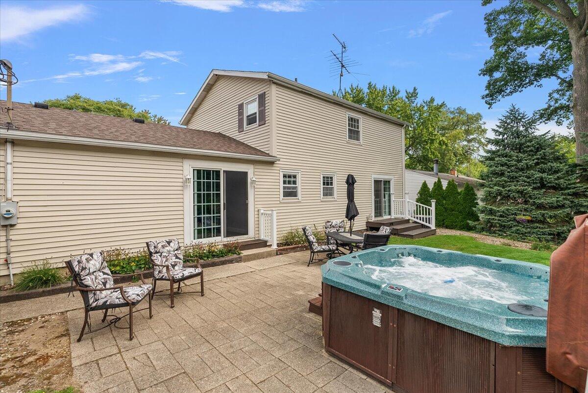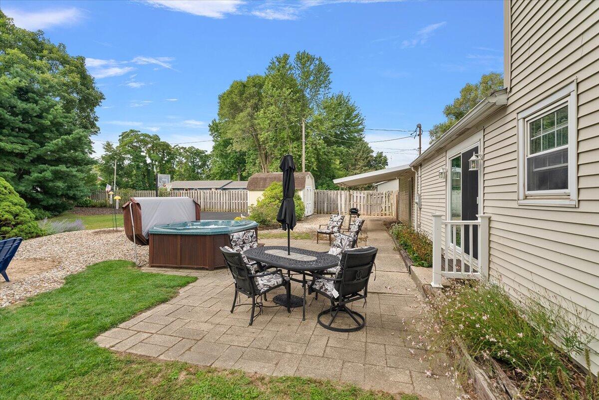 NEW PRICE! Pride of ownership shows in this beautifully maintained 3-bedroom, 1.5-bath home with almost 2,000 square feet of living space in the highly desirable Village of Stevensville. Inside, you'll find a pristine interior with spacious living areas, perfect for everyday living and entertaining. Outside living is enhanced with a large backyard, ideal for summer barbecues, gardening, or simply relaxing in your private outdoor space with a hot tub and half basketball court. Main level features a spacious kitchen opening to the dining area, nice size living room, home office, and half bath with laundry. The attached 3 car garage and shed offers ample storage. Nestled on golf cart friendly roads, you're just a quick ride away from local restaurants, shops, and a brewery, embracing the true charm of small town living with modern conveniences. Located just 1.5 miles from Grand Mere State Park, you'll enjoy easy access to 1,000 acres of natural beauty and half a mile of stunning Lake Michigan shoreline. Lakeshore schools. Don't miss out on this great home!