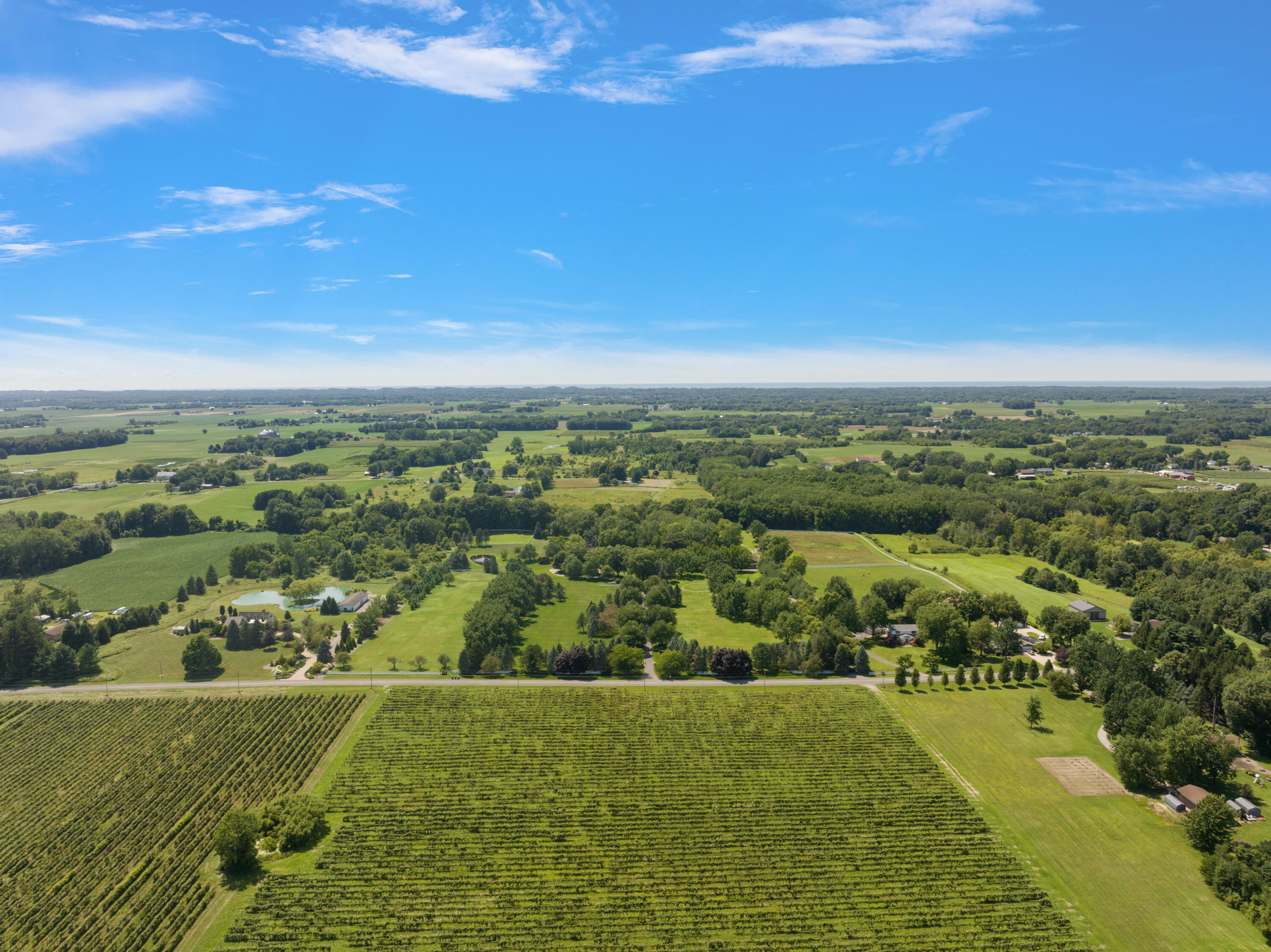 This country estate was developed by a well known Southwestern Michigan self-made industrialist, who along with his wife, were very generous philanthropists in the area. The 4,796 SF two story, 5 bedroom, 5-1/2 bath residence offers a prestigious presence, quiet elegance and 45 acres nestled in privacy. Additional key features include a kidney-shaped inground pool, cabana with bath and bar, portico from the main house to the 4-car detached garage, 2-car attached garage, a 2,800 SF stable with 8 box stalls, half bath, lounge area wet bar and tack room, 4,000 SF storage, maintenance and workshop building and three picturesque ponds. Enjoy being only a short driving distance to some of the best beaches, wineries, breweries, private and public golf courses and marinas. The convenient location is only 1-1/2 hours from Chicago, East on I-94, Exit 22, Stevensville, and only 45 minutes to South Bend and Notre Dame University. This one of a kind residence is a rare find!